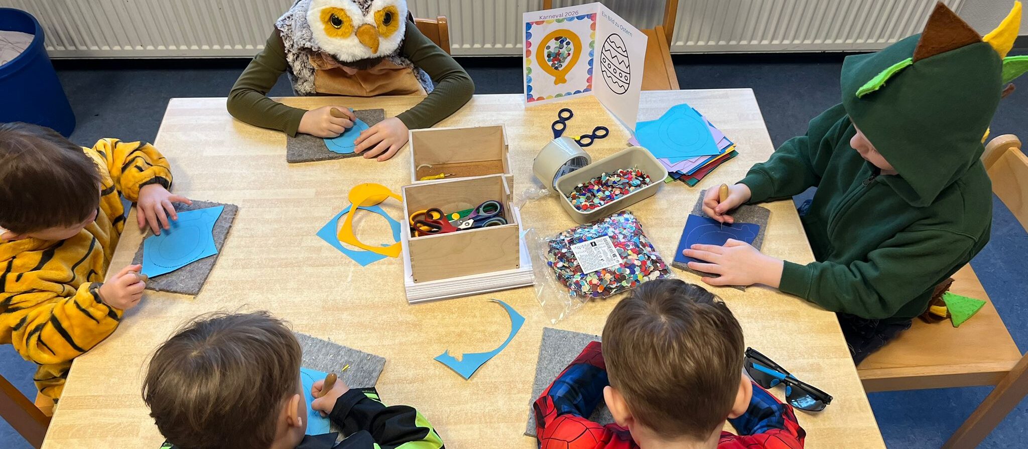 Angefangen mit lustigen Karnevalsbildern über bunt bemalte Ostereier und mit Fingerdruck gestalteten Herzen haben die Kinder kleine Bücher erstellt, um jedem Einzelnen eine Freude zu bereiten.